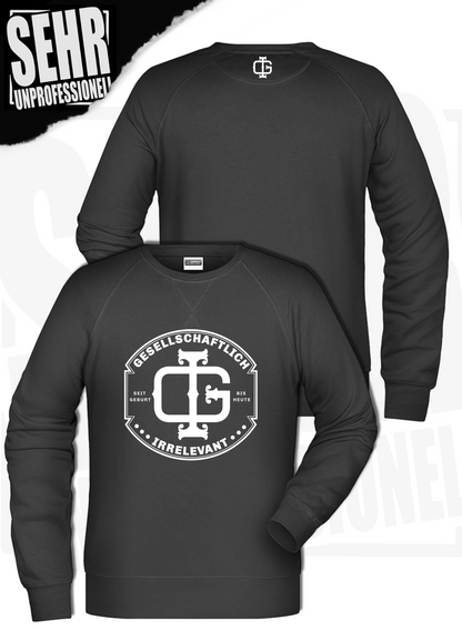 • schwarzer / weißer oder graue "Gesellschaftlich Irrelevant" Logo als Frontprint